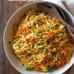 - Peel and julienne or shred carrots.